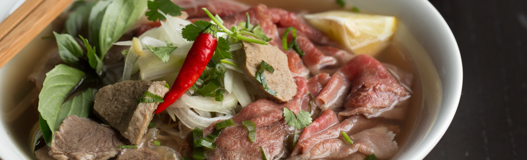 Pho beef noodle soup w/ beef meatballs, sliced beef & beef brisket.